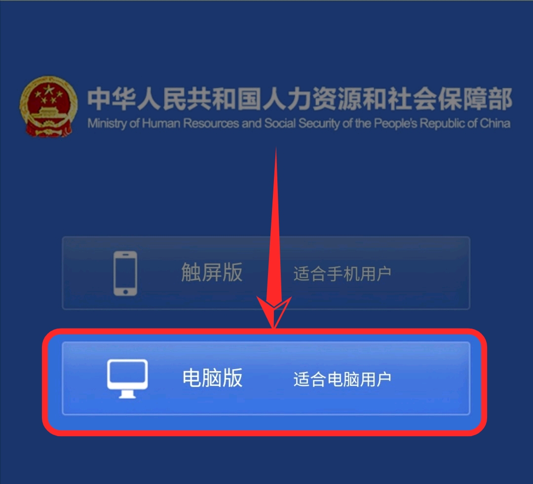 如果是在手机上打开 人社部官网的话,打开前会有个提示,让你选择 触屏版还是电脑版,这时,我们选择电脑版打开,如果是选择触屏版的话,就找不到部属网站的选项。